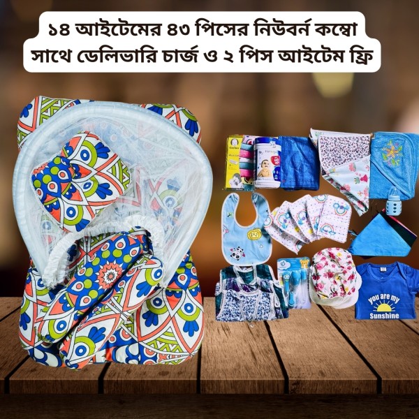 ১৪টি আইটেম এর টোটাল ৪৩ পিছ সাথে ২ পিছ বেবী বিব ফ্রি ও মেম্বারশিপ কার্ড যা দিয়ে পরবর্তী ৬ মাস যেকোন কেনাকাটায় ১৫-৩০% অফ এবং ল সমগ্র বাংলাদেশে ডেলিভারি চার্জ ফ্রি তহ আছেই।