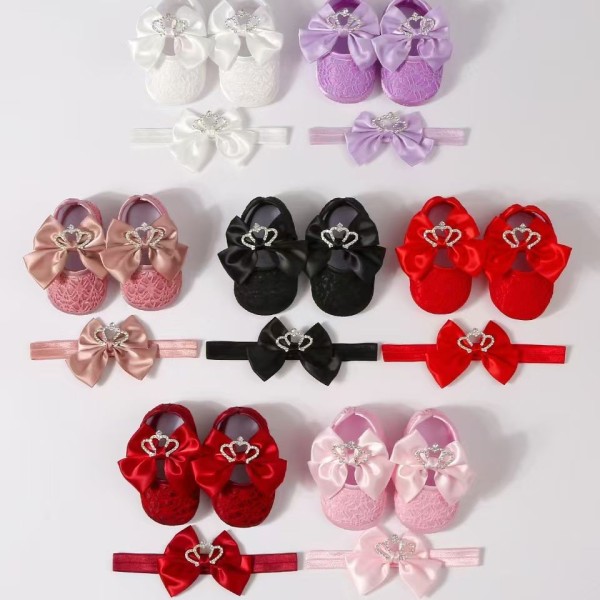 ০-১২ মাস মেয়ে বাবুর জন্য Crown Design Shoes With Hairband White