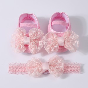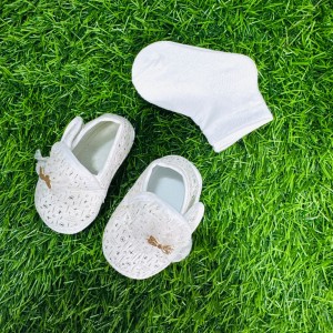 ০-১২ মাস মেয়ে বাবুর জন্য Tie Stone Newborn Shoes With Hairband White