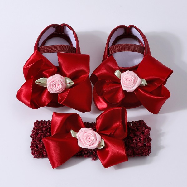 ০-১২ মাস মেয়ে বাবুর জন্য Single Rose Shoes With Hairband Maroon