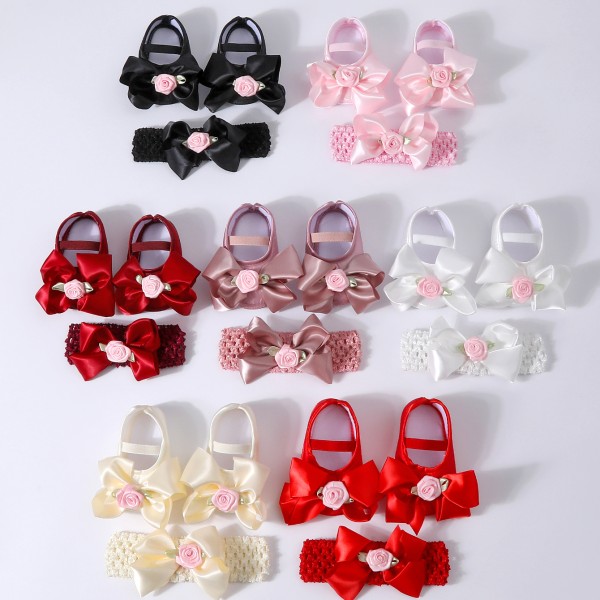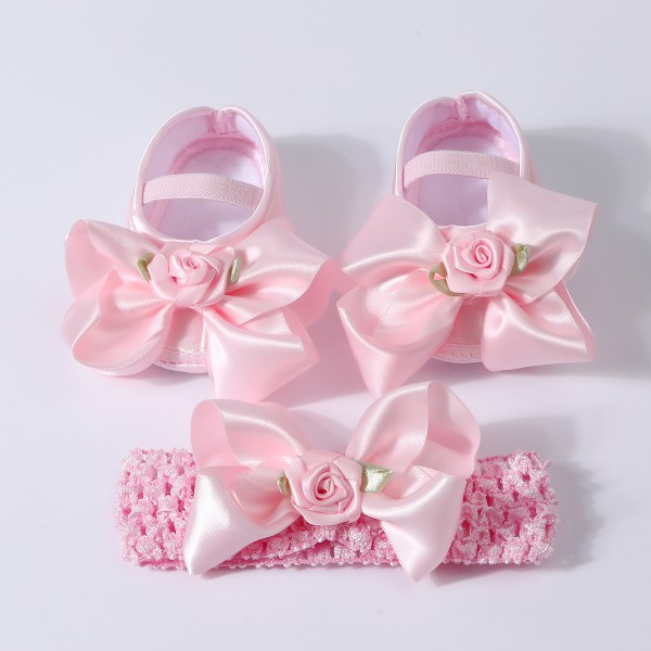 ০-১২ মাস মেয়ে বাবুর জন্য Single Rose Shoes With Hairband Pink