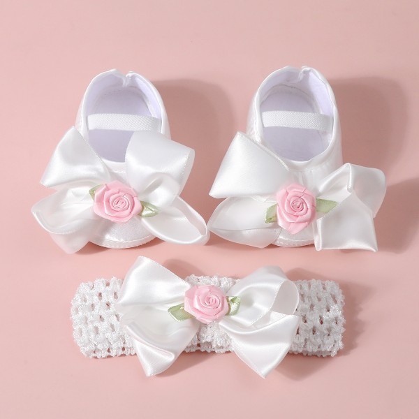০-১২ মাস মেয়ে বাবুর জন্য Single Rose Shoes With Hairband White