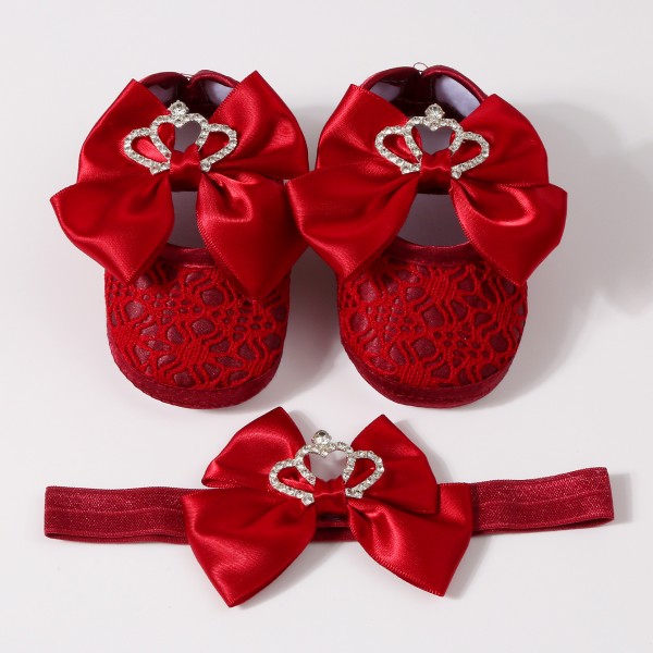 ০-১২ মাস মেয়ে বাবুর জন্য Crown Design Shoes With Hairband Maroon